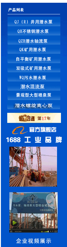 天津潛水電泵制造商關鍵字:井用潛水泵,大流量潛水泵,深井泵,熱水潛水泵,高揚程潛水泵,軸流泵,污水泵,